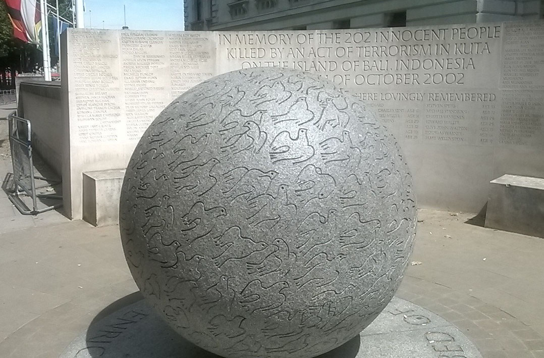 Andy, as you well know from your visit to London, that on the ground surrounding the marble sphere at the Bali memorial are the words: