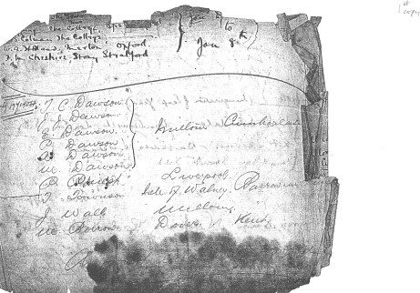 This is a copy of a scan my father did recently of the ‘Dawson’ page after being given permission to record the document by the hotel’s owners. Sadly, it had been allowed to deteriorate significantly since 1983; so much so that it was almost unrecognisable as the same image.