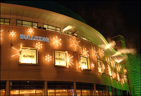 It is the night before Christmas and I am in the ‘Bullring’ Birmingham’s famous shopping centre and snow is falling. I last saw the ‘Old’ Bullring in about 1979. It was, let’s face it not only an eyesore, but an earsore, armsore and legsore it was so bad. Not so today. It is very tidy (in fact bang tidy) neat and very busy.