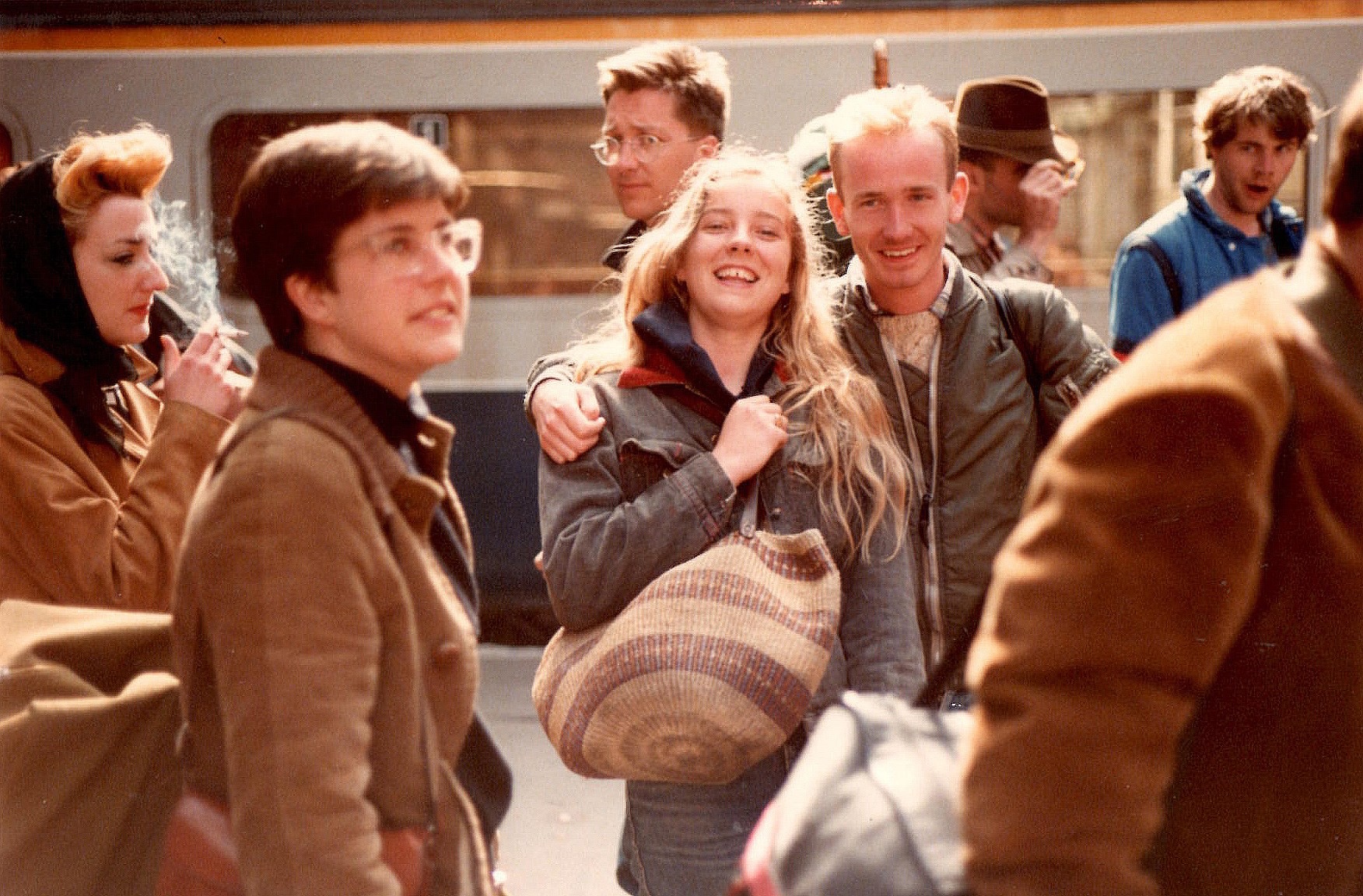 The photo shows us at Liverpool street station. It is 8:30am, we have just got off the train from Harwich after an overnight crossing from the Hook of Holland. We all look a bit dazed and confused. Which is not surprising after four days of heavy drinking in Amsterdam. I also have vague memories of us taking over the dancefloor on the ferry on the last night, then sleeping under one of the stairwells before a 6:00am wake up call on arrival back at Harwich.