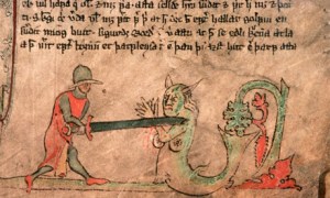 Illustrated manuscript of an Icelandic Saga: (‘Eat or you shall be put to the sword’ ‘No! No more chicken Goujons!’)