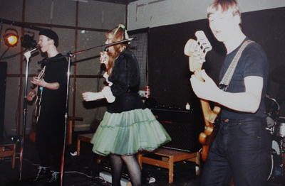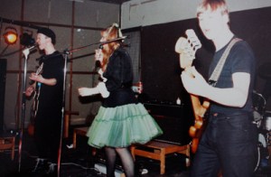 The band was Self: guitar and vox, Keith: bass, Stalker (AKA Simon Stalk/ Stalker Suave) drums and later, Jill: frilly dresses and vox. and of course our ‘honourary’ member roadie and sometime driver, Naughty Nige. We set out with a true punk ‘Do it yourself’ ethic. I could play guitar, but neither Keith nor Stalker had instruments let alone the ability to play them. We all worked during the summer 1980, and by the september had the basic gear and a sufficient level of musicianship to get us off the ground. The Jam was our loose template. I wrote most of the songs, which were mainly comments on what I saw or heard around me, or personal relationships. For instance there was one song we played which (although he never realised it) was a commentary on my deteriorating relationship with the drummer. I’ve got to say, all things considered we did develop into a tight little unit, and although only a threesome, with nothing much to fill out the sound: no keyboards, effects or suchlike, we made a pretty good noise, largely the result of Keith’s intelligent and solid bass playing which allowed Stalker the framework around which to build his machine gun fills and thumping bass kick.