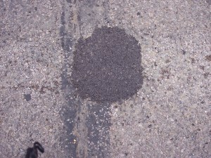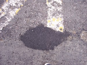 So, there we have it. As I said, at the time of the ‘incident’ both roads were deserted, there wasn’t another soul around to have witnessed it. Interestingly, however – and I am not making any suggestions, nor drawing any conclusions and I freely admit I wasn’t looking 100% forward, after straining backwards to catch a glimpse of this demolition site: in my experience never the best position to pilot a moving vehicle from, but – within a few days I noticed that the offending holes (if you’ll pardon the expression) had been hurridly and in my humble opinion, inexpertly filled.