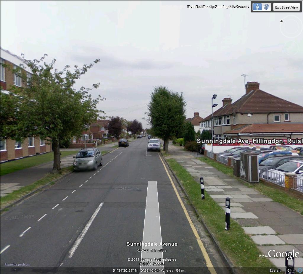 Either way, I’ll meet you in Hillingdon, Middlesex, UK. At the juncton of Field End Road and Sunningdale Avenue in Eastcote. While those of you that are taking the ‘interactive’ option attend to that, I ought to say by way of introduction, if you are not aware, you are about to navigate roads built during the 1930s. The styles of houses, street planning and layout are all very typical of London’s suburban ‘Metro-land’. A pastoral idyll, within easy reach of the office. A little slice of Buckinghamshire, Hertfordshire, or in this case Middlesex, that in the 1930s was what one aspired to in order to escape the brutality and coarseness of our capital city. Or Manchester, or Newcastle Upon Tyne, or Birmingham or wherever.